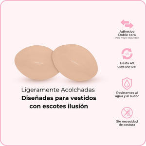 Estas almohadillas ligeramente acolchadas están específicamente diseñadas para proporcionar un realce sutil a la vez que nos aseguran frente a incómodos accidentes con nuestras prendas. Perfectas para vestidos de boda con corsets.