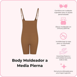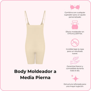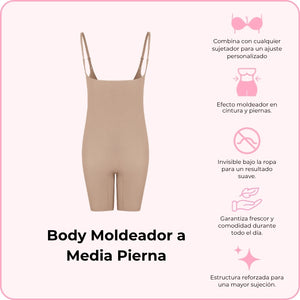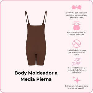 Te presentamos el Body Moldeador a Media Pierna de BOOMBA, ¡el secreto para lucir fabulosa sin sudar! Con un moldeado específico, un diseño de busto abierto y cobertura a media pierna, te alisa y te levanta. Confeccionado en un tejido suave y transpirable, es lo suficientemente cómodo como para llevarlo todo el día y se mantiene sin costuras bajo cualquier prenda. Tanto si te vistes para un gran evento como si sólo quieres sentirte estupenda todos los días, este body te cubre las espaldas, ¡de verdad!