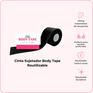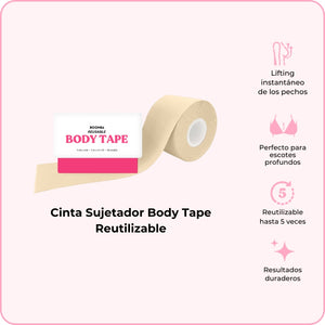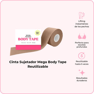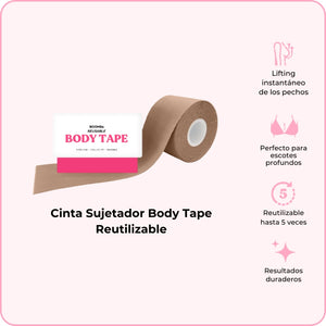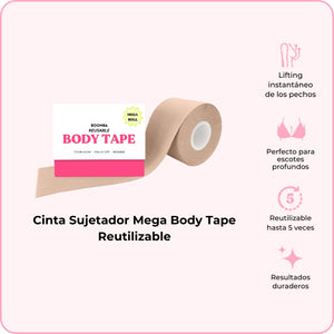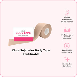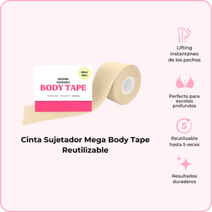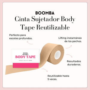 La Cinta Sujetador Body Tape Reutilizable de BOOMBA puede reutilizarse hasta cinco veces. Diseñada para adaptarse a tus formas, nuestra cinta corporal es suave pero resistente, y ofrece resultados duraderos durante 12 horas.