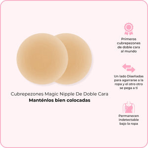 Los primeros cubrepezones magic nipple de doble cara del mundo. Un lado diseñado para sujetarse a tu prenda y el otro se pega a ti. Evita que tus pezones se salgan, a la vez que permanece indetectable bajo tu ropa.