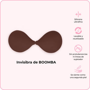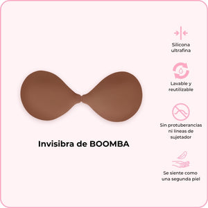 Cómo Limpiarlo: Este sujetador adhesivo debe limpiarse suavemente a mano. No se debe lavar en la lavadora ni poner en secadora. Use agua tibia y jabón suave. Utilice suavemente la yema de los dedos para lavar el adhesivo, evitando el contacto directo con las uñas para no dañarlo. Sacuda con cuidado el sujetador al terminar para eliminar el exceso de agua y déjelo secar al aire en un área libre de polvo. Una vez que su sujetador esté seco, vuelva a colocar las películas protectoras y guárdelo en la caja de BOOMBA donde venía, lejos de la luz solar directa.