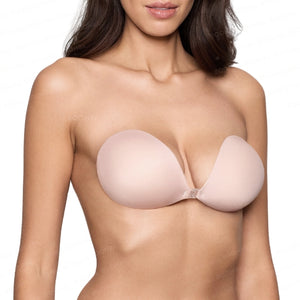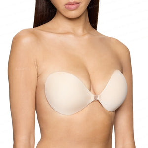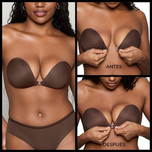 Conecta los broches y presiona firmemente ambas copas para asegurar tu sujetador adhesivo en su lugar.