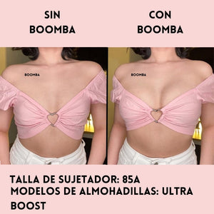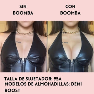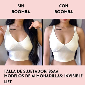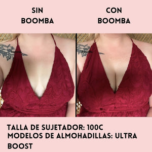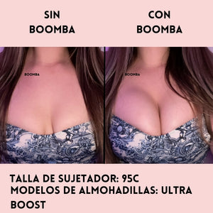 Ten en cuenta que los resultados pueden variar en función del tamaño y la forma del pecho. Los resultados serán similares a los de un sujetador push up doble. Las almohadillas acolchadas de BOOMBA funcionan mejor con pechos naturales.