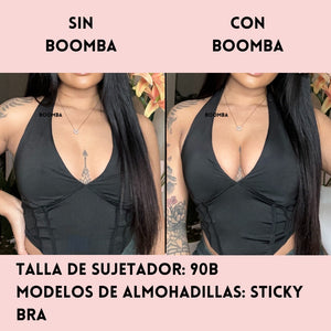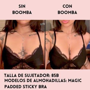 Cómo Limpiarlo: Este sujetador adhesivo debe limpiarse suavemente a mano. No se debe lavar en la lavadora ni poner en secadora. Use agua tibia y jabón suave. Utilice suavemente la yema de los dedos para lavar el adhesivo, evitando el contacto directo con las uñas para no dañarlo. Sacuda con cuidado el sujetador al terminar para eliminar el exceso de agua y déjelo secar al aire en un área libre de polvo. Una vez que su sujetador esté seco, vuelva a colocar las películas protectoras y guárdelo en la caja de BOOMBA donde venía, lejos de la luz solar directa.
