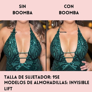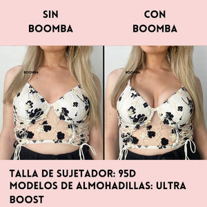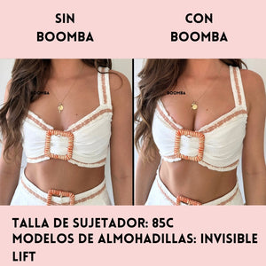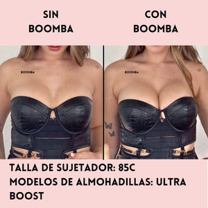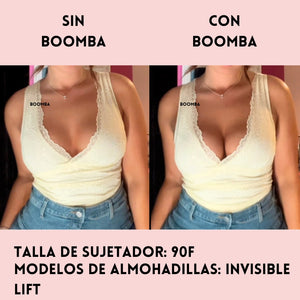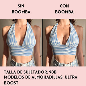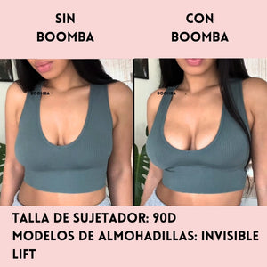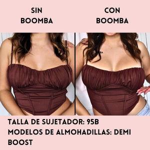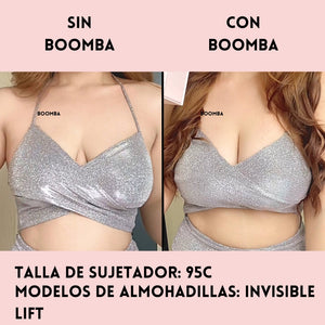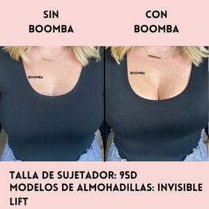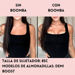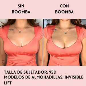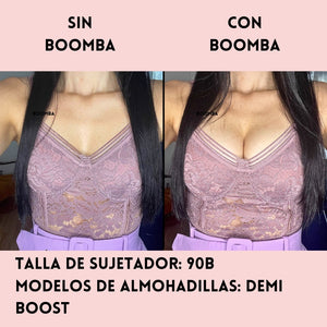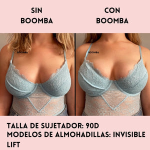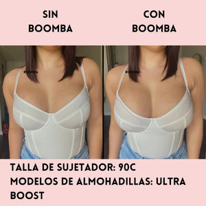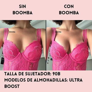 Ten en cuenta que los resultados pueden variar en función del tamaño y la forma del pecho. Los resultados serán similares a los de un sujetador push up doble. Las almohadillas acolchadas de BOOMBA funcionan mejor con pechos naturales.