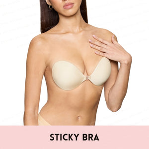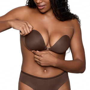 Conecta los broches y presiona firmemente ambas copas para asegurar tu sujetador adhesivo en su lugar.