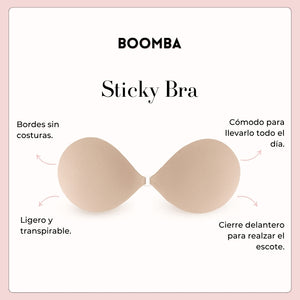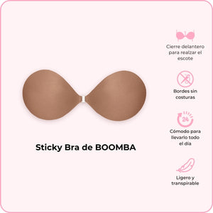 Cómo Limpiarlo: Este sujetador adhesivo debe limpiarse suavemente a mano. No se debe lavar en la lavadora ni poner en secadora. Use agua tibia y jabón suave. Utilice suavemente la yema de los dedos para lavar el adhesivo, evitando el contacto directo con las uñas para no dañarlo. Sacuda con cuidado el sujetador al terminar para eliminar el exceso de agua y déjelo secar al aire en un área libre de polvo. Una vez que su sujetador esté seco, vuelva a colocar las películas protectoras y guárdelo en la caja de BOOMBA donde venía, lejos de la luz solar directa.