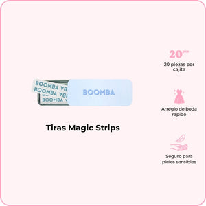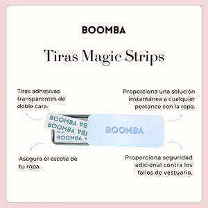 La Tiras Magic Strips de BOOMBA es una tira adhesiva transparente que se oculta discretamente debajo de la ropa para brindar un nivel adicional de seguridad. ¡Anímate con confianza, simplemente córtala, pégala y listo!